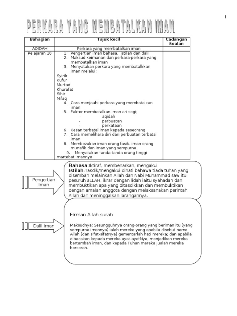 Pismp Ambilan Jan 2012 Pendidikan Islam 2 Perkara Yang Membatalkan Iman